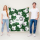 This sporty soccer fleece blanket features the realistic image of an oversized soccer ball with green, grey and white panels upon which her name, monogram and jersey number can be personalised, overlying a pattern of smaller green, grey and white soccer balls and the sporty font text "I LOVE SOCCER" that stretches between the angled rows of soccer balls - background is customisable dark green - by katz_d_zynes