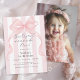 Celebrate your little girl's milestone in sweet style with our adorable “Girls Just Wanna Be One” first birthday with photo invitation! This charming invite features a soft pink colour palette and a cute, girly bow graphic and a popular awning stripes background in pastel pink and white, setting the tone for a fun and fabulous celebration. The back of the invitation has a photo template for uploading your child's selected photo. Whether you're planning a cosy family gathering or a big birthday bash, this design adds the perfect touch of sass and sweetness.