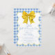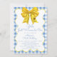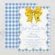 Girls Just Wanna Be One Yellow Blue 1st Birthday Invitation - Celebrate your little girl's first milestone with this cute, rustic and sweet first birthday invitation. Featuring a watercolor illustration of a yellow, coquette bow with a squiggle frame in white and yellow on a blue and white gingham pattern background. Perfect for a Onederful 1st Birthday celebration, Bow Birthday Party or Picnic Themed Yellow and Blue First Birthday. Available in both print and digital formats. Customise this editable first birthday party invitation for girls with your own event details.