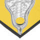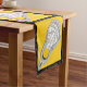 Girls lacrosse table runner party or event decor, featuring women's lax stick and ball design pattern on yellow background with black border.
