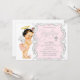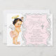 Girls Angel baptism invitations with pretty pink and silver swirl background and adorable dark hair brunette angel baby baptism invitation. This cute pink angel baby girl baptism invitation is easily customised for your event by adding your event details, font style, font size & colour, and wording. You can move the cross as needed, as well as the baptism text.