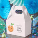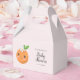 Cute baby shower favour box card featuring an illustration of a mandarine orange with a white flower on her head and a sweet blushing smile. Perfect for a girl's baby shower.