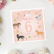 This cute girls’ birthday napkin design features a pastel pink background with unicorns, horses, rainbows, and stars in a soft, girly, magical style. The whimsical design adds a sweet, coordinated touch to any unicorn or horse-themed party. Check out our collection for matching party supplies.
