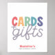 Modern rainbow “Cards & Gifts” sign, perfect for stylish parties. Featuring minimalist retro-inspired colourful lettering, it’s the perfect match for a “Two Much Fun” 2nd birthday — or any modern rainbow birthday celebration. A simple, chic addition to your gift table décor.