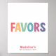 Modern rainbow “Favors” sign, perfect for stylish parties. Featuring minimalist retro-inspired colourful lettering, it’s the perfect match for a “Two Much Fun” 2nd birthday — or any modern rainbow birthday celebration. A simple, chic addition to your gift table décor.
