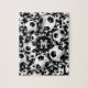 This girls' soccer jigsaw puzzle features a pattern of varied size black and white soccer balls on a black background - customise with her name and monogram - by katz_d_zynes
