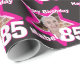 Birthday wrapping paper in a cute hot pink, white and black add your own photograph design to the star. Personalise this girlie birthday paper with your own fun photo, name and age. Currently reads Happy Birthday Doris 85. A great fun way to wrap a special 85th birthday present for a mother, nan, grandmother, great grandmother, friend or relative. Uniquely designed by Sarah Trett.