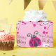 Birthday wrapping paper in a cute pink girls flying ladybug / ladybird and hearts design. Personalise this girlie birthday paper with your own name and age. Currently reads Happy Birthday Bethany 5 today. Uniquely designed by Sarah Trett.