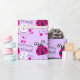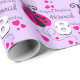 Birthday wrapping paper in a cute purple and pink girls flying ladybug / ladybird and hearts design. Personalise this girlie birthday paper with your own name and age. Currently reads Happy Birthday Hannah 8 today. Uniquely designed by Sarah Trett.