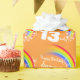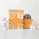 Birthday wrapping paper in a colourful rainbow with stars and orange sky design. Personalise this girls birthday paper with your own name and age 10 to 19. Currently reads Happy Birthday Summer 13 today. Perfect for wrapping a special teenagers 13th birthday gift. Uniquely designed by Sarah Trett.