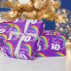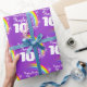 Birthday wrapping paper in a colourful rainbow with stars and purple sky design. Personalise this girls birthday paper with your own name and age 10 to 19. Currently reads Happy Birthday Haylee 10 today. Perfect for wrapping a special tenth birthday gift. Uniquely designed by Sarah Trett.