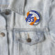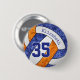 This team colours volleyball button features the realistic image of a stylised blue, orange & white volleyball that has an artsy floral kaleidoscopic pattern blended with its blue & orange panels - personalise with the athlete's name and jersey number - by katz_d_zynes | search ALL katzdzynes' blue & orange volleyball team colours gifts >>>> https://www.zazzle.com/store/katz_d_zynes/products?cg=196050574805398359