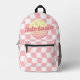 Another girly backpack by JessicaAmber - message me about custom orders! This fun all over print backpack features a pastel pink and white chequerboard design. The pattern has a wavy distortion to it, giving a fun and youthful vibe. The name at the top says 'Adriana' in a chunky retro font with a drop shadow - you can change this to your name. A great birthday gift for your teen daughter. ••• For more feminine backpacks, visit my store Zazzle.com/JessicaAmberArtist