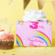 Birthday wrapping paper in pink with a colourful rainbow and white stars design. Personalise this girls birthday paper with your own name and age. Currently reads Happy Birthday Gracie 3 today. Perfect for wrapping a special third birthday gift.