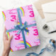 Girls name rainbow 3rd birthday patterned wrap wrapping paper