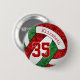 This team colours volleyball button features the realistic image of a stylised red, green & white volleyball that has an artsy floral kaleidoscopic pattern blended with its red & green panels - personalise with the athlete's name and jersey number - by katz_d_zynes