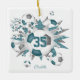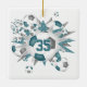 This cute soccer ornament features an "explosion" of varied size teal, grey and white soccer balls and grey, teal and white star shapes - a pattern of tiny polka dots covers the teal star - customise with the athlete's name & jersey number - by katz_d_zynes