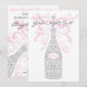 Cheer on the Bride-to-be with this pretty lacy styled champagne bottle decorated with love birds, grapes, and vines. Pink swirls of champagne makes this card perfect for those girly occasions. Customise this invitation with your own text. Original Illustration by pj_design.