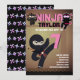 Fun and energetic Girls Ninja Party invitations with a cartoon, movie star theme and vibe in pink, purple and black colours. Perfect for ninja girls who love the warrior life. For matching party supplies view the attached collection.