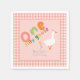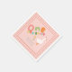 This cute and whimsical girls 1st birthday napkin design features one silly goose with a pink party hat and summer flower, with matching pink gingham, and can be personalised with your child’s name in fun typography. The perfect colourful farm design for your little one's first birthday!