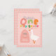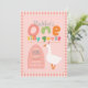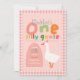 Girls One Silly Goose Pink Gingham First Birthday Invitation