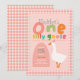 This cute and whimsical girls 1st birthday invitation design features one silly goose with a pink party hat, with a pink gingham border, and can be personalized with all the information you need for your child's first party in a cute and colorful typography. The invite also features a matching gingham pattern on the back. The perfect farm invitation for your little one's birthday!