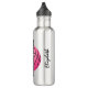 Personalise this stainless steel basketball water bottle with her name and jersey number; features the word "Basketball" orientated vertically over a bright pink basketball graphic - text is customisable black - by katz_d_zynes
