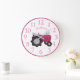 Girls Personalised Pink Tractor Wall Clock