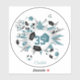 This fun vinyl sticker features an "explosion" of varied size teal, black and white soccer balls and grey, teal and white star shapes - a pattern of tiny polka dots covers the teal star - customise with the athlete's name & jersey number - by katz_d_zynes