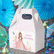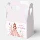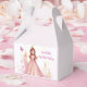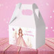 A pink favor box for girls featuring a cute princess design with space to personalize a name. Great for holding small treats or gifts at a birthday party.