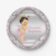 Angel baptism paper plates with adorable angel baby girl on a beautiful pink and silver swirl background. You can add the text of your choice to personalise these sweet baby girl baptism paper plates.