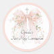 Girl's Pink Bow Floral First Communion Classic Round Sticker