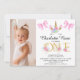 Girls Pink Bows Floral Unicorn 1st Birthday Invitation