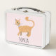 Girls Pink Cute Ginger Tabby Cat Cartoon Kids Metal Lunch Box