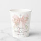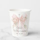 A lovely First Holy Communion paper cup with feminine styling featuring a pastel pink watercolor bow with pink flowers. A silver cross sits above the bow as a symbol of Christianity. Easy to personalize and prepare for this momentous occasion in the life of your daughter. This design is perfect a girl celebrating this important religious rite. This napkin design is available in 2 sizes; shown here in the smaller 8 oz. size, they are also available in 12 oz. size and may be ordered with or without lids. Suitable for both hot and cold beverages.