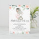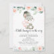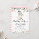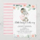 Girls Pink Floral Gray Bunny Baby Shower Invitation