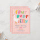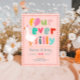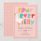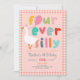 This cute and whimsical “Four Ever Silly” 4th birthday invitation features an adorable goose holding a balloon, playful colourful typography, and a girly pink gingham border. Easily personalise with your party details to create a fun, unique invite for your child’s fourth birthday. The reverse showcases a matching gingham pattern - perfect for a Silly Goose or farm-themed 4th birthday party.