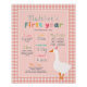 This cute girls 1st birthday milestone poster features one silly goose with a pink party hat, with a pink gingham border, and can be personalised with details of your child’s first year in colourful typography. Details include first favs, height, weight, number of teeth, and first achievements. The perfect floral farm design to celebrate your little one's first year!