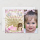 Mermaid birthday party invitation with adorable brunette baby mermaid princess in a pretty pearl clam shell on a beautiful pink and gold sparkle background. This cute mermaid birthday party invitation is easily customised for your event by simply adding your details and photo. This is a printed design with no real glitter, pearls, etc.