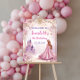 A pink birthday welcome poster for girls featuring a cute princess design. Perfect for greeting guests and adding a magical touch to a princess-themed celebration.
