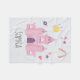 This adorable girly kids blanket design features a pink princess castle, crown, stars, hearts, and flowers, and can be personalised with your girls name. The perfect pink magical-themed addition to your kids room or baby nursery!