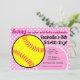 Your birthday will be a home run with this adorable softball birthday invite! Features giant yellow and pink softball, with pink and white polka dot background.