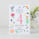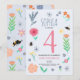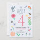 This cute and girly kids birthday invitation design features a floral design, with flowers, bees, and botanicals, and a matching spring pattern on the back. The invite can be personalised with all the information you need for your child's party in a whimsical typography. The perfect pink floral invitations for your little one's first, second, third, or fourth birthday!
