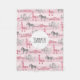 This gorgeous safari children's blanket features a pattern of hand painted pink watercolor elephants, giraffes, zebras and crocodiles on a background of beautiful pink stripes, and has place for you to add your girl's name. Perfect for animal lovers! Check out the rest of our collection for other beautiful and girly kids blankets.