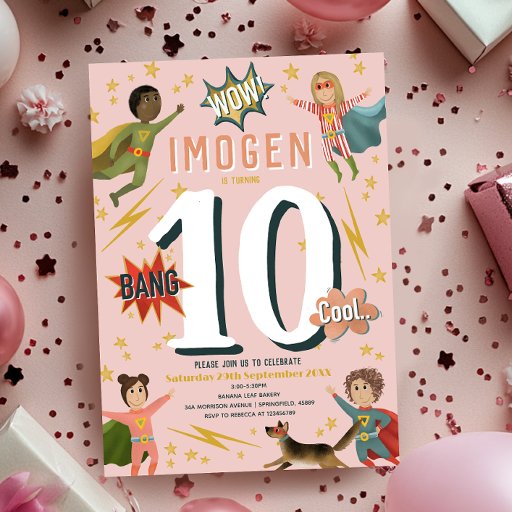 Girls Cool Pink Superhero Birthday PartyDesigned by Aimee Marie Gray