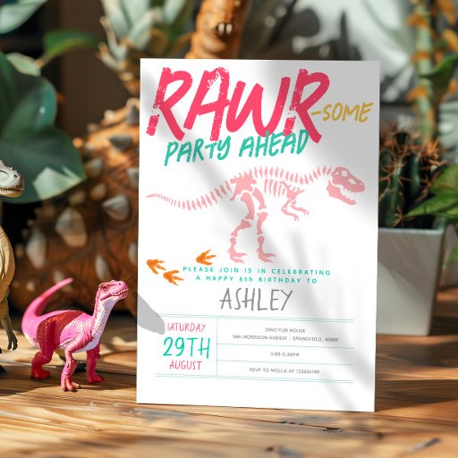 Girls Cute Pink Dinosaur Fossil Dig BirthdayDesigned by Aimee Marie Gray