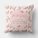 Girls Pink Watercolor Butterfly Floral Birth Stats Cushion
