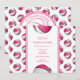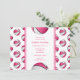 This fun basketball party invitation is fully customisable and features a pattern of tiny pink and white basketballs on the front and back - customise her party details on a white background with pink border accents - by katz_d_zynes