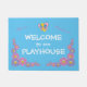 Welcome to our Playhouse doormat with girly flowers and butterfly for children's play house. Customise the girls names, or delete if unneeded. Soft pastel colour scheme has flowers with heart shaped petals and a smiling butterfly. Names in pink script can be edited to another font or colour if desired.