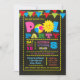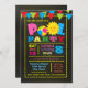 Girl's pool party invitation with colourful text and border on a chalkboard background. This fun and festive pool party invitation is easily customised for your event by simply adding your details.